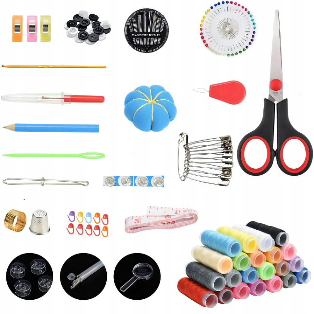 DUŻY PRZYBORNIK ZESTAW KRAWIECKI DO SZYCIA IGŁY NOŻYCZKI NICI 230 ELEMENTÓW