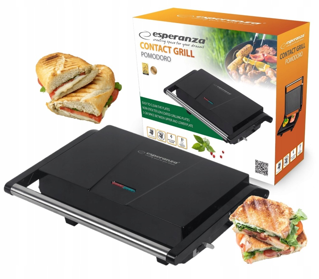 Grill kontaktowy Esperanza POMODORO to praktyczne urządzenie dla osób ceniących szybkie i wygodne przygotowanie potraw