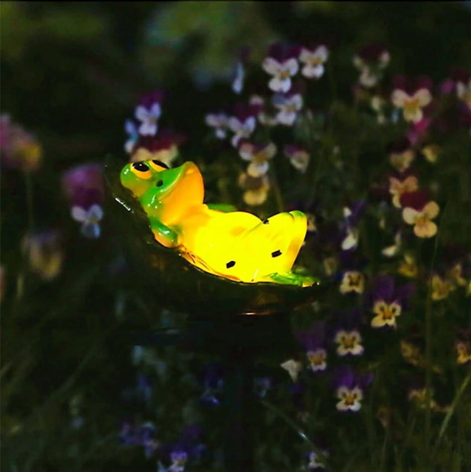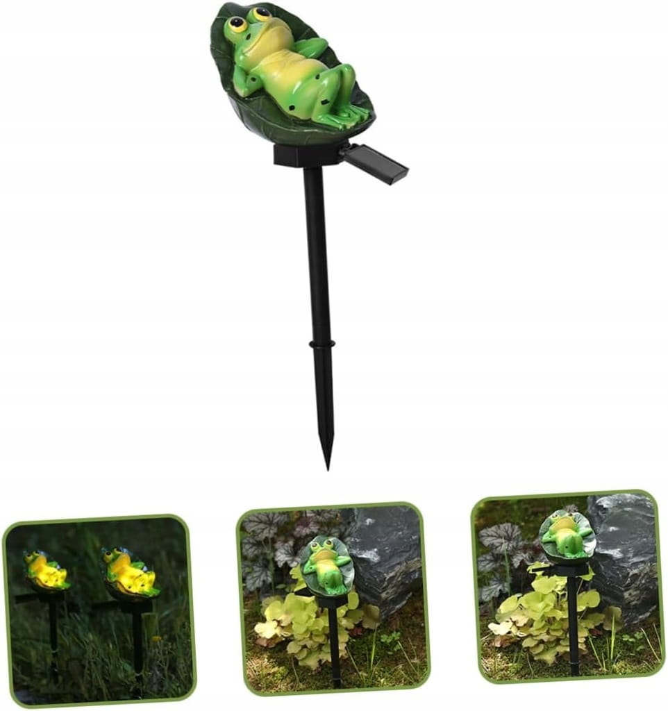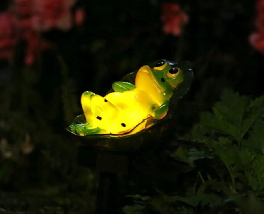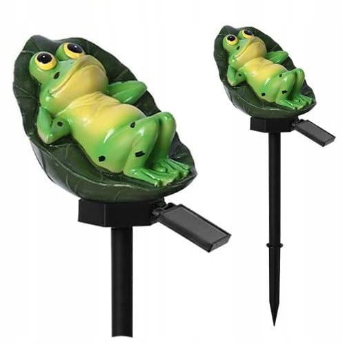 LAMPKA SOLARNA OGRODOWA LED WBIJANA LAMPA ZEWNĘTRZNA ŻABKA NA LIŚCIU ŻABA