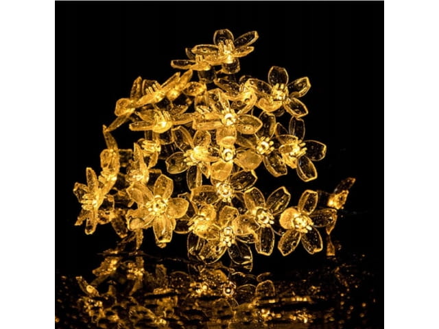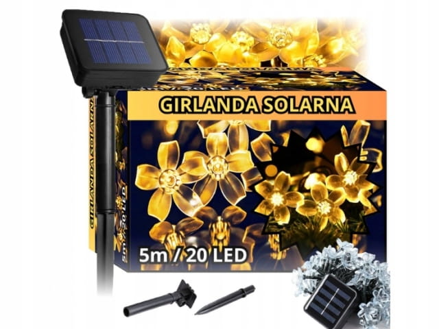 LAMPKI SOLARNE GIRLANDA OGRODOWA SOLARNA KWIATKI BIAŁY CIEPŁY 5M