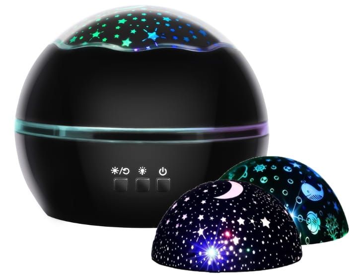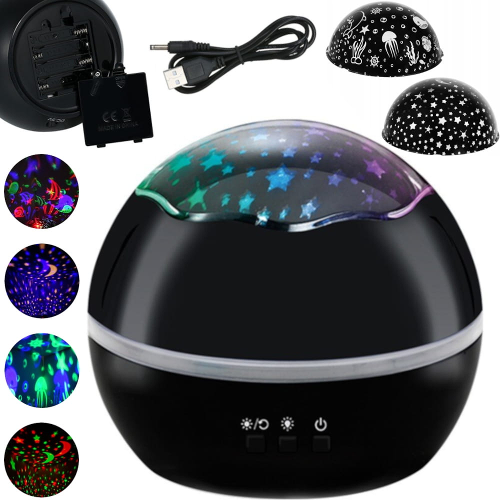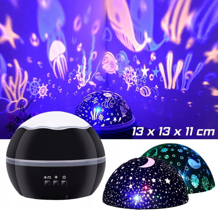 Dziecku nie znudzi się projektor, który ma w zestawie 2 filtry. Rozgwieżdżone niebo lub podwodny świat. Jeżeli Twój maluszek nie będzie chciał usnąć zmień mu po prostu nakładkę i zobacz jak słodko zasypia.