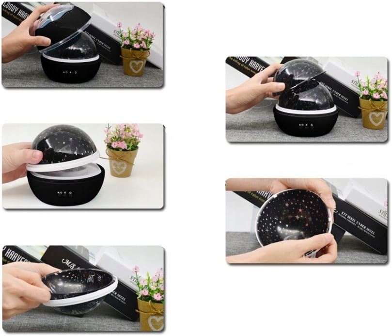 Posiada wiele efektownych ruchomych fal świetlnych, które wyświetlając się na ścianach i suficie tworzą realistyczne rozgwieżdżone nocne niebo lub zwierzęta oceanu.