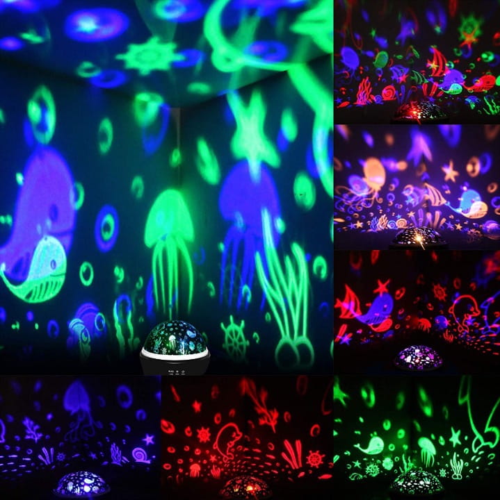 ✅ DWA SPOSOBY UŻYWANIA - nasz gadżet może być używany jako lampka nocna do pokoju dziecięcego lub jako projektor gwiazd / podwodnego świata, rzucając na ścianach i suficie przepiękną projekcję.
