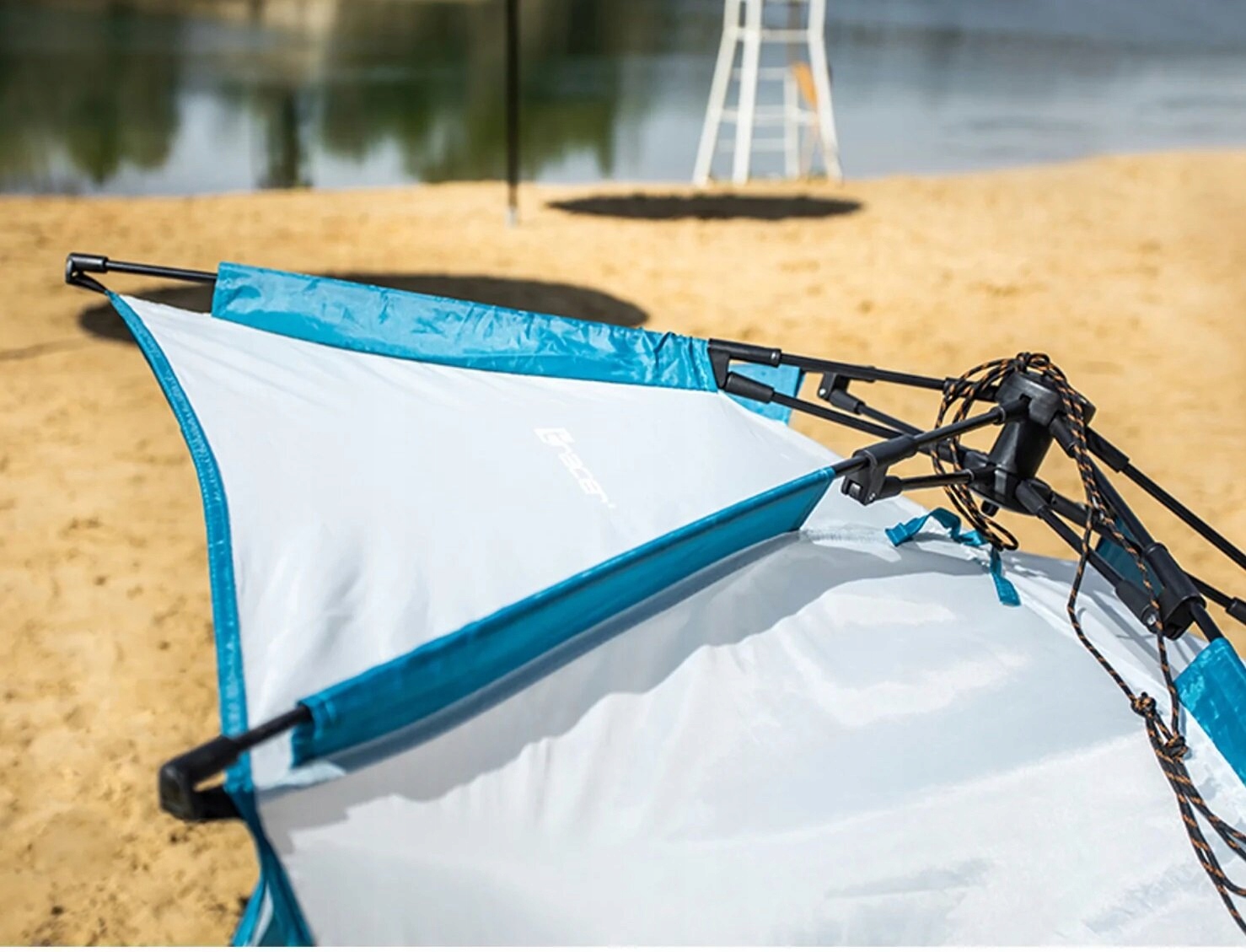 ✅ Budowa namiotu oparta jest na automatycznym mechanizmie, co sprawia, że jego rozłożenie i złożenie zajmuje mniej niż minutę. Dzięki temu nie musisz marnować cennego czasu na rozkładanie tradycyjnego namiotu - wystarczy chwila i możesz zająć się plażowaniem.