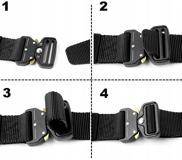 Klamra: wytrzymała, metalowa - bardzo łatwy system blokowania, dobrze trzymająca pas,