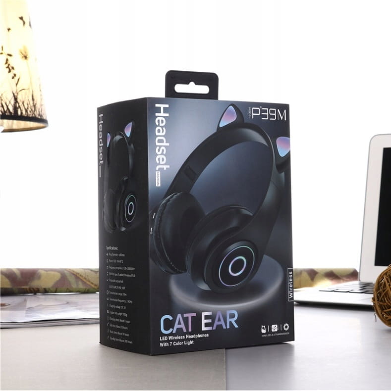 ✅ Piękny design, komfortowe, wygodne nauszniki oraz bezprzewodowa komunikacja bluetooth pozwala na słuchanie muzyki bez kabli. Słuchawki mają ozdobne kocie uszy które zmieniają się na 7 kolorów