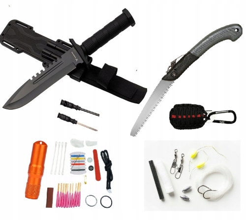 ✅ Dzięki takiemu zestawowi poradzisz sobie w wielu sytuacjach, bez problemu rozpalisz ogień, złowisz ryby, przygotujesz prosty posiłek, czy zadbasz o prowizoryczne schronienie.