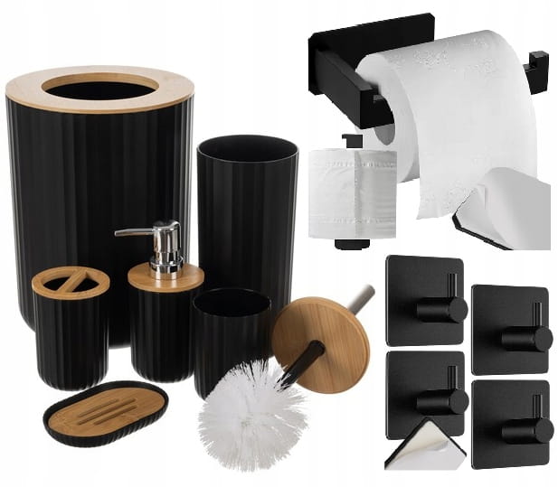 Zestaw akcesoriów łazienkowych szczotka WC kosz uchwyt na papier 4 wieszaki
